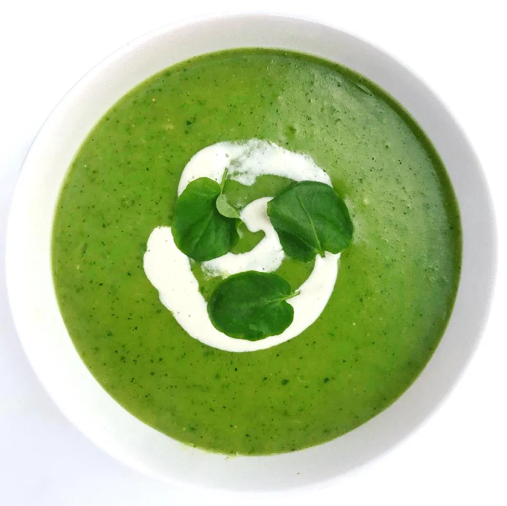 - Let soup cook for 2-3 more minutes to allow it to thicken. Remove from heat and serve. Top with cashew cream or bacon and garnish with watercress leaves.